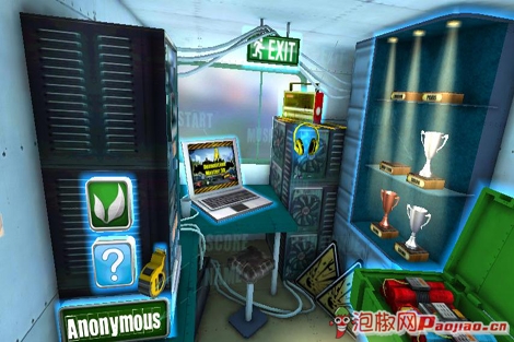 3D游戲在視覺上的震撼效果自然不必多言,友友們都明白滴。進入游戲之後在一段時間的等待之後畫面會跳轉到一個類似實驗室的選單。其實類似這樣的選單還是十分具有特色的,相信很多第一次接觸破壞專家的童鞋們都絕對不會想到這個看似過場的畫面中其實隱藏著很多功能設定按鈕。在簡單觀察觀察就[ySUCQ63VW5],還是快點按下屏幕上的“Start”開始咱們的爆破生涯吧。