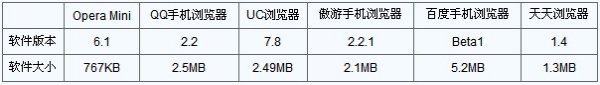 評測軟件:Opera Mini、QQ手機浏覽器、UC浏覽器、傲游手機浏覽器、百度手機浏覽器、天天浏覽器