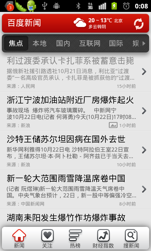 百度新聞客戶端整合互聯網海量新聞資訊,為用戶提供全方位優質的新聞內容,涵蓋國內、國際、軍事、社會、財經、體育、娛樂、女人等資訊,並提供全國所有地級市的本地新聞。
