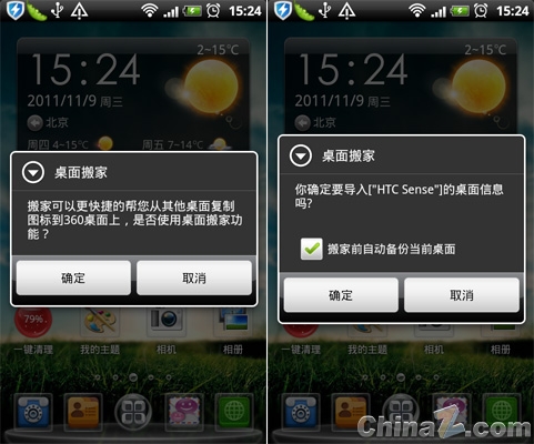 首次使用360手機桌面,提示使用桌面搬家工具,可以更其它桌面復制圖標到360桌面上。