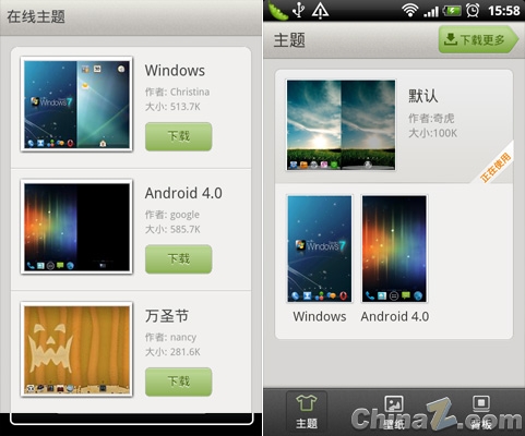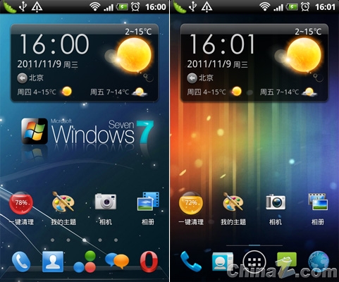 左為WP7主題,右為Android4.0主題