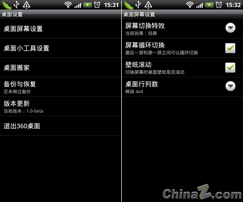 360手機桌面設置選項