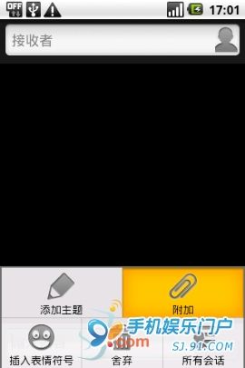 1、進入短信,創建一條新信息;2、按下“ MENU ”鍵點擊“附加”
