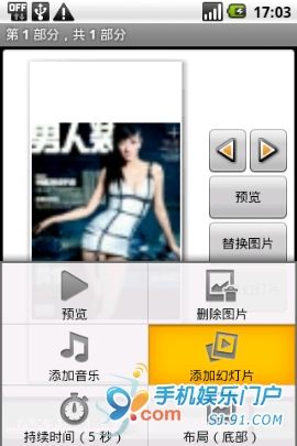 5、進入添加幻燈片的界面,點擊“添加圖片”就可以進入你自己圖片庫,選擇自己所需要的圖片;6、這樣第一張圖片就添加好了