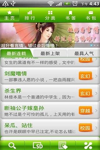 簡介:一款內容以免費小說書旗網為基礎的在線閱讀器,支持書籍同步閱讀,支持全自動書簽功能,自動保存閱讀歷史,無需下載TXT文件,自動預讀下一章。