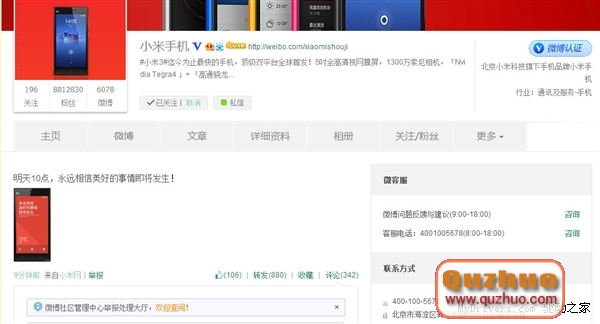 中午12點,小米手機在其官方微博上表示明天上午小米將會有大事發生,配圖中則是一張小米手機3的圖片,這讓很多用戶都認為這是小米即將宣布5月份新品發布會的信息,在這場發布會上小米很有可能發布小米手機3S以及第二代小米電視等新品。