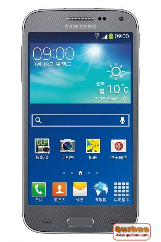 根據三星官網介紹。Galaxy Beam 2采用了塑料材質的金屬飾面外殼機身,相比其前身來說纖薄了很多,同時配備一塊4.66英寸480p顯示屏,搭載四核1.2GHz處理器,內置1GB內存和32GB機身存儲空間,運行Android 4.2.2操作系統,支持移動TD-SCDMA網絡。