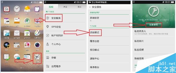 2,進入安全列表頁,找到【隱私保護】點擊進入,按照系統提示設置密碼和加密,就能開啟訪客模式。