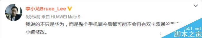 如今除了iPhone,國內幾乎所有的智能手機都支持雙卡雙待。但是,雙卡手機還存在“雙通”和“單通”之別。日前華為手機產品線PDT經理李小龍表示,Mate 9雖然支持全網通3.0,但並不支持雙卡雙通,而且未來整個手機界都不會再有雙卡雙通的手機了。