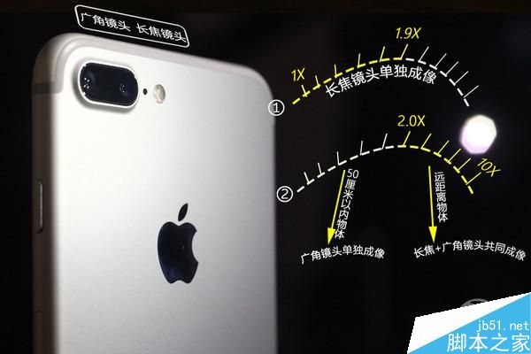 iPhone 7 Plus采用了雙攝像頭,其中一個是廣角鏡頭,另一個為長焦鏡頭。類似iPhone 7 Plus的雙鏡頭切換變焦手機通過切換廣角、長焦攝像頭,可以實現不連續的變焦功能。