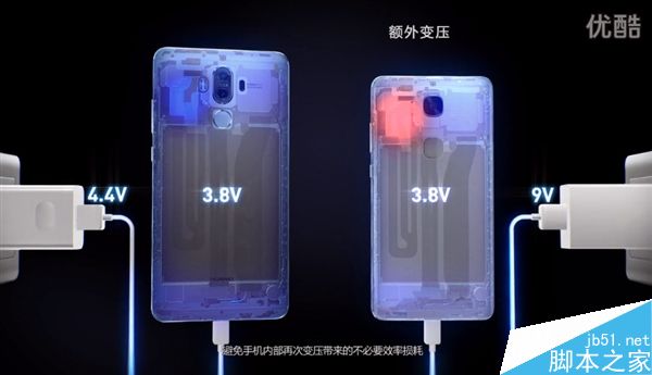視頻中了解到,華為Mate 9采用的智能充電芯片,能通過直充SCP協議與充電器進行實時通信,識別充電器與充電線的負載能力差異,在充電過程中根據電池電壓需求,在充電過程中智能協調充電器輸出最匹配的電壓給電池,避免手機內部再次變壓帶來的不必要的效率損耗。