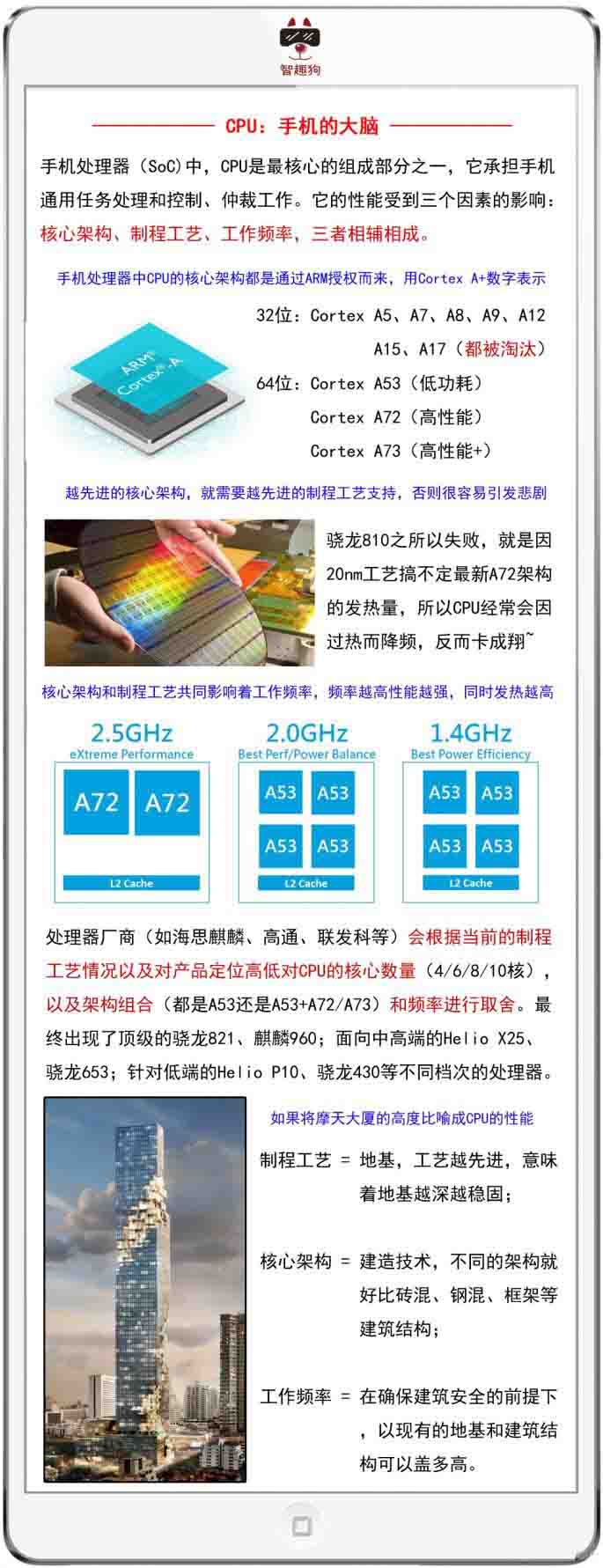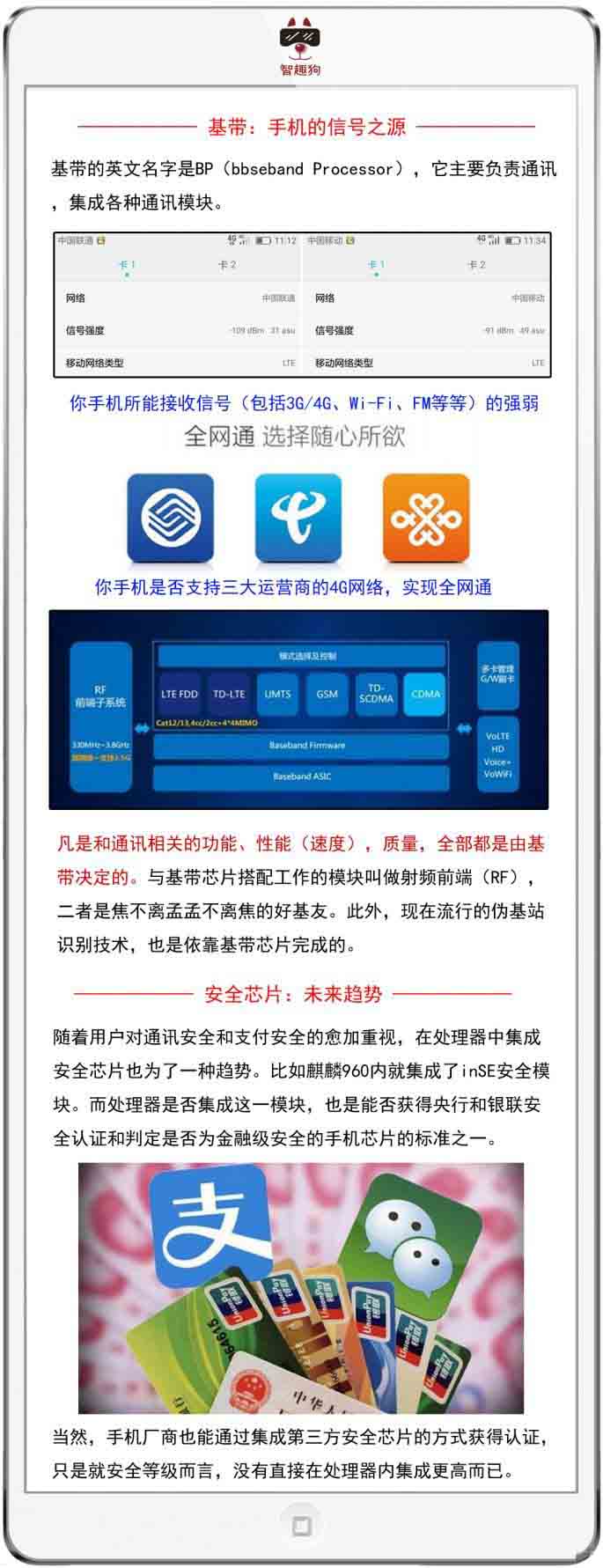 怎麼樣,看到這裡你還敢小看手機處理器嗎?智趣狗還得再提醒你一下,每顆手機處理器還會配有很多周邊芯片,比如電源管理芯片等等。之所以有時采用相同處理器的兩款手機在功能上有所差異,就是因為處理器中基帶、ISP等芯片都是可以用第三方芯片替代的。比如有些手機處理器的基帶不支持電信網絡,想獲得全網通能力就必須外掛一顆高通的全網通基帶。
