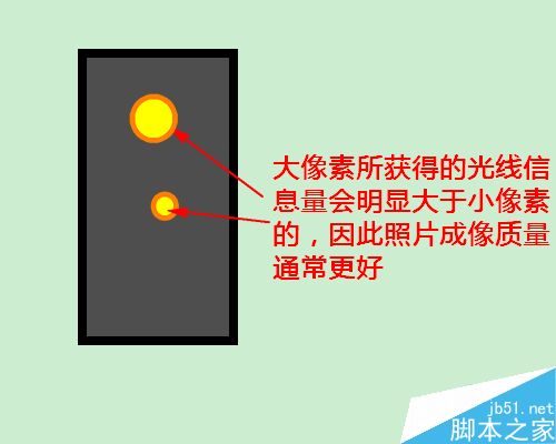 CMOS依靠它上面的每個像素點去獲得光線,然後通過一系列復雜的算法轉換將顏色值等信息保存在照片裡。像素點的面積越大,得到的光線就越多,因而拍出來的照片效果也就越好。