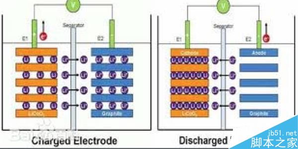充電的時候,在外加電場的影響下,正極材料LiCoO2分子裡面的锂元素脫離出來,變成帶正電荷的锂離子(Li),在電場力的作用下,從正極移動 到負極,與負極的碳原子發生化學反應,生成LiC6,於是從正極跑出來的锂離子就很“穩定”的嵌入到負極的石墨層狀結構當中。從正極跑出來轉移到負極的锂 離子越多,這個電池可以存儲的能量就越多。