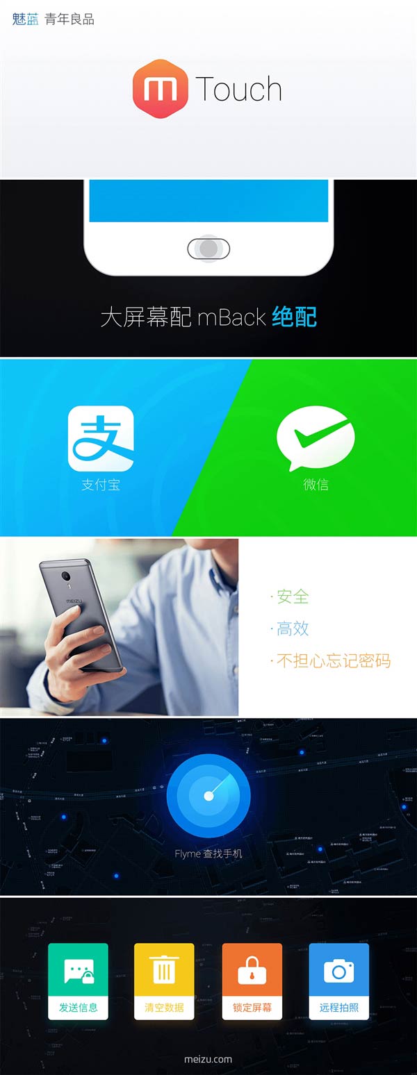 另外,魅藍Max也支持指紋應用加密,以及魅族標志性的mBack輕觸返回功能,以及Flyme查找手機功能。