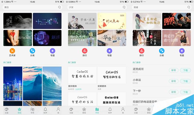 在主題商店中,除了豐富的個性化主題之外,用戶還可以針對自己的愛好來定制個性化壁紙、字體甚至鈴聲,讓手機在手中不再是一成不變,而是用不同的顏色、聲音來豐富生活的色彩。