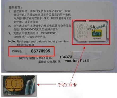 4、手機卡剛買的時候附帶著的那卡上就有PUK碼~不過這個方法比較不現實了,估計早就扔沒了哈~沒了的就可以無視了。