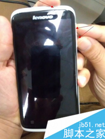 1、關機狀態下同時長按手機電源鍵、音量+、音量—這三個鍵;
