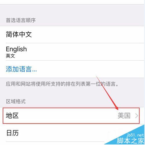 3)修改“地區”。原來的地區一般都是“中國”,把這裡改成“美國”。