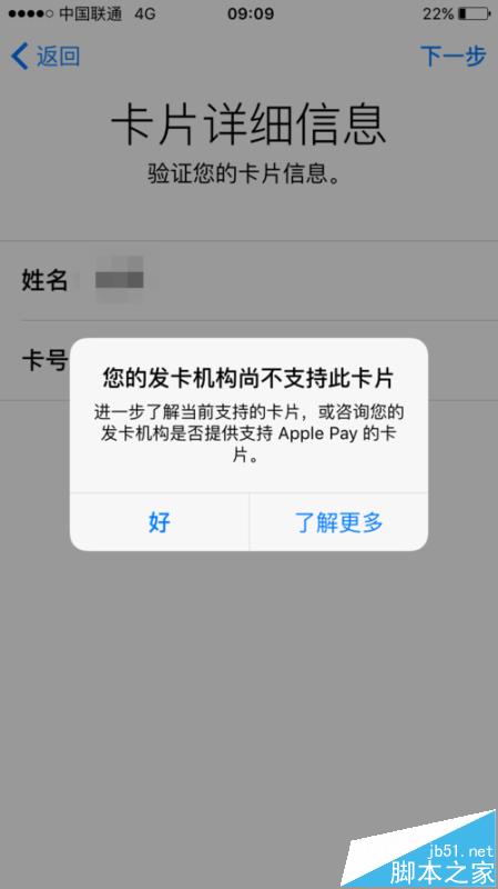 6、小編的卡到了這一步直接提示不支持該卡類型,又去犯了資料,這次apple pay開通支持了19家銀行,但正好小編這張卡不在支持之列,具體可以看見蘋果的網站。沒辦法,換一張其它的試試。