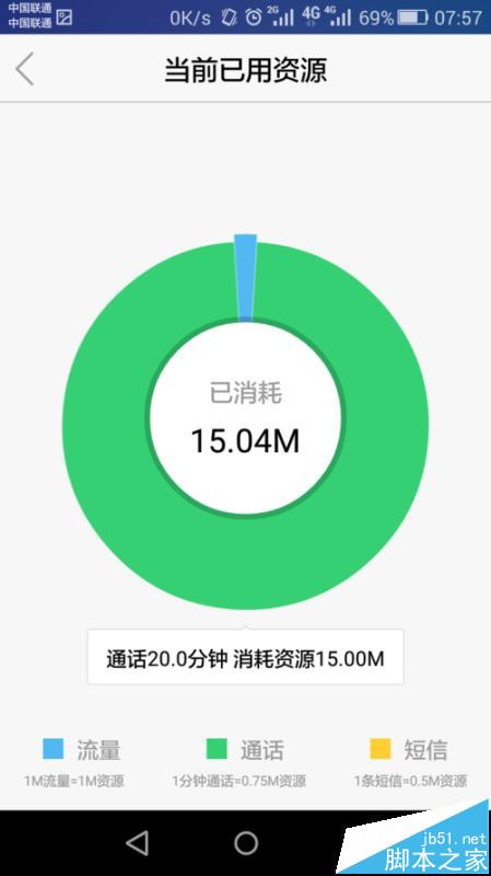 4、點擊當前已用資源,可以看到話費分類使用情況等信息。