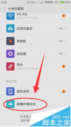 3、進入“小米雲服務”,點擊“雲儲存空間”,查看雲空間使用情況,一般占用空間最大的為相冊圖片;