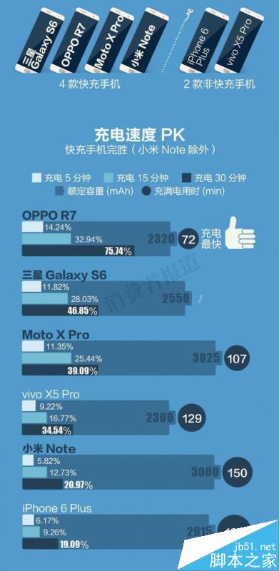 充電30分鐘OPPO R7s比vivo x6多474毫安。相當於OPPO R7s手機15%的電量,VIVO X6手機19%的電量。