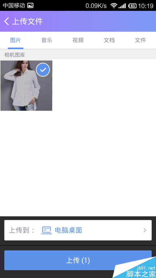 3.選擇文件或文件夾,並在屏幕下方的界面中設置上傳到電腦的位置,點擊上傳,就可以了。你選擇的文件就會以很快的速度上傳到電腦了。