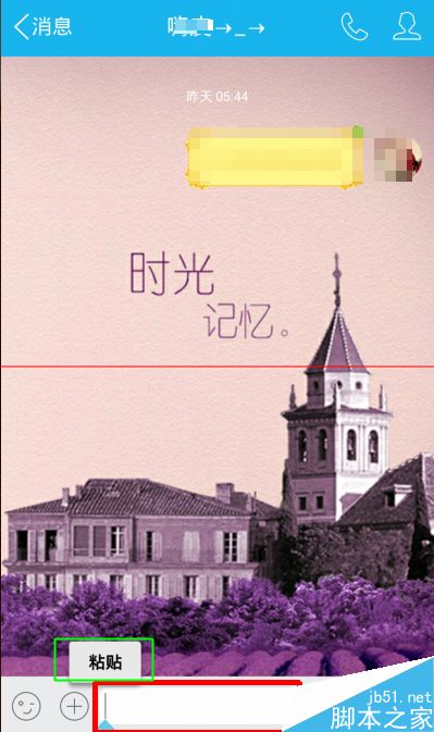 6、然後我們長按紅色框位置選擇“粘貼”(不需要發送),