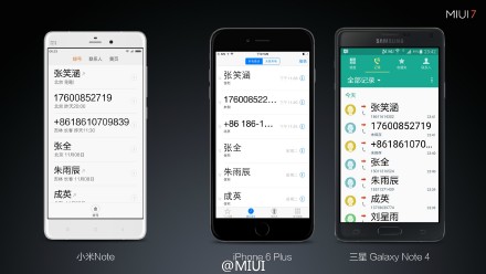 MIUI 7能夠自動同步給手機中的聯系人,將照片顯示在對方手機上,並支持短視頻形式的動態秀。