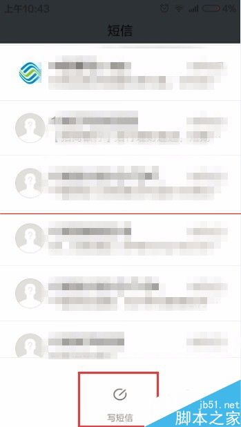 2、點開短信後,我們就要開始送祝福了。點擊寫短信,開始我們的送祝福之旅。