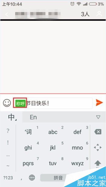 8、在短信編輯界面我們就會發現在短信編輯區域中多了兩個不同顏色的字,叫做稱呼,這就是我們剛才設定的昵稱,我們可以在這後邊繼續編輯短信內容,在我們點擊發送之後,給每個人的短信就是我們設定好的昵稱和短信內容了。這樣我們就能即體現出我們發短信的誠意,還方便我們自己。