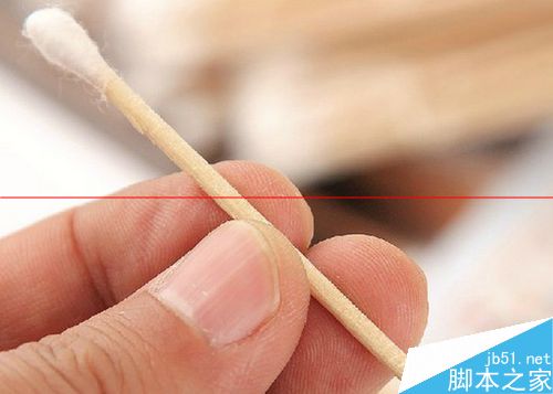 3、有的機器用的時間比較長了充電口比較髒,可能捏扁棉棒頭擦得效果不好,那麼我們就用美工刀將棉棒的竹簽削薄,再纏上棉花蘸上酒精擦就可以了。