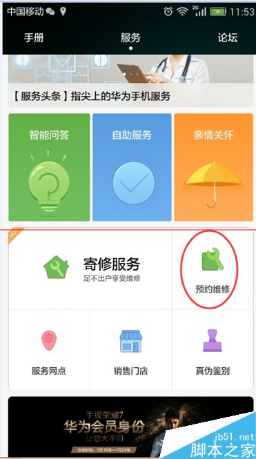 1、進入手機服務,點擊預約維修