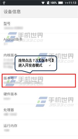 2)連續點擊7次【版本號】即可進入開發者模式,返回【設置】可見【開發者選項】。(如下圖)