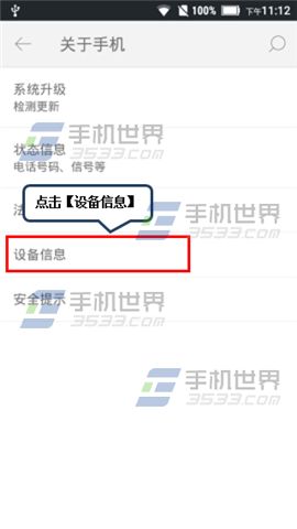 1)打開【聯想樂檬K3】設置,點擊【關於手機】,點擊【設備信息】。(如下圖)