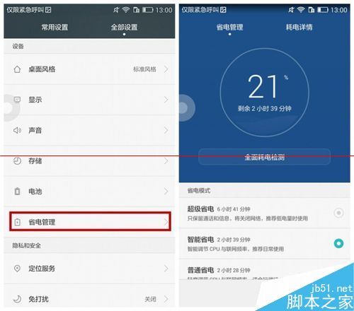 1、打開【設置】-【省電管理】界面