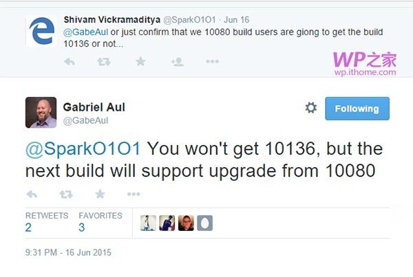 Windows Insider負責人Gabriel Aul再次強調,Win10手機版10080系統不能獲取到10136更新,如果等不及需要先降級到WP8.1系統。