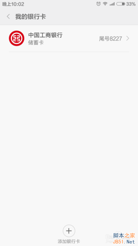 第五步,銀行卡頁面的正下方有一個+號,下邊備注:添加銀行卡,我們點擊這個圖標,進入添加銀行卡頁面。