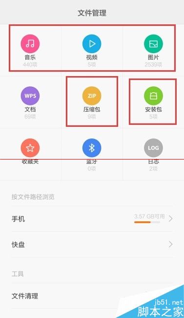 1、們首先來刪除一些不需要的文件,我們在手機裡面首先找到“文件管理”這一個應用(如圖紅色框內所示)
