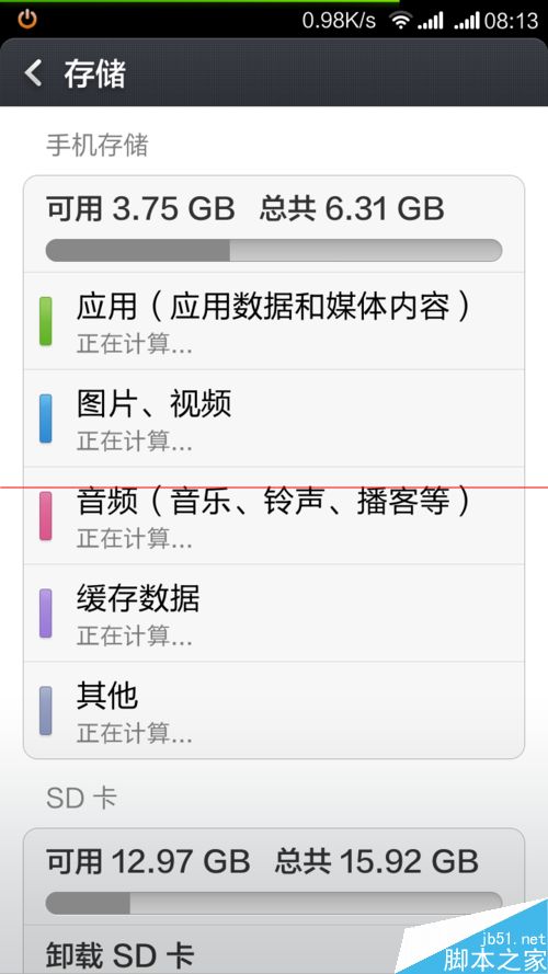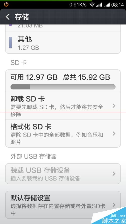 4、進入存儲向上劃找默認存儲