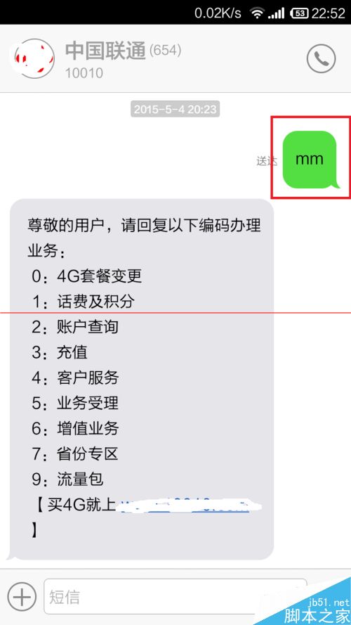 1.第一步給10010發送“mm”內容的短信,耐心等待回復