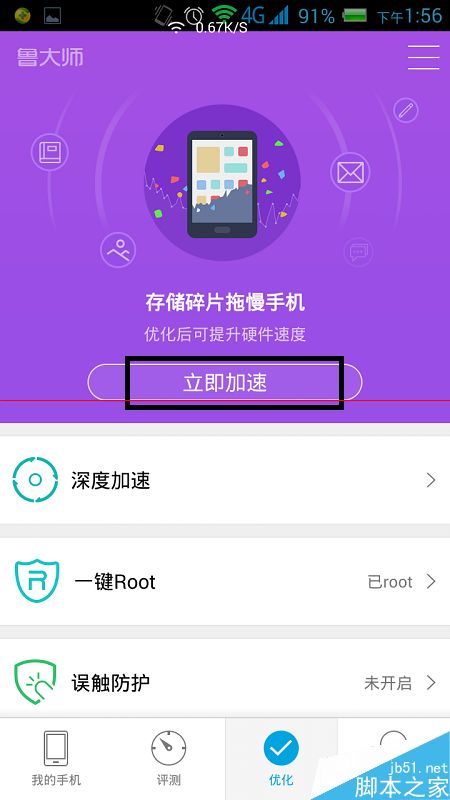 2、打開了優化掃描頁面,現在,我們點擊右上方的“深度加速”按鈕,進入到碎片整理頁面。