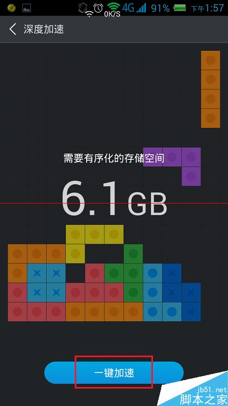 4、掃描結果出現,顯示需要整理的空間一共有多大。點擊下方的“一鍵加速”按鈕開始加速。