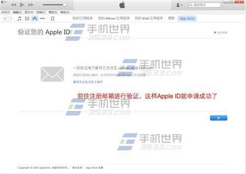 7)最後到自己申請時填寫的郵箱裡查看郵件,點擊驗證Apple ID即注冊完成了。(如下圖所示)