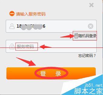 2、同樣的兩種登錄方法,輸入服務密碼或者短信驗證碼,登錄