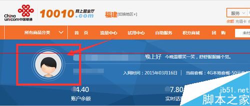 3、聯通的查詢方法和移動不一樣,此時點擊如圖箭頭所示的人頭頭像,查詢的是自己的個人資料