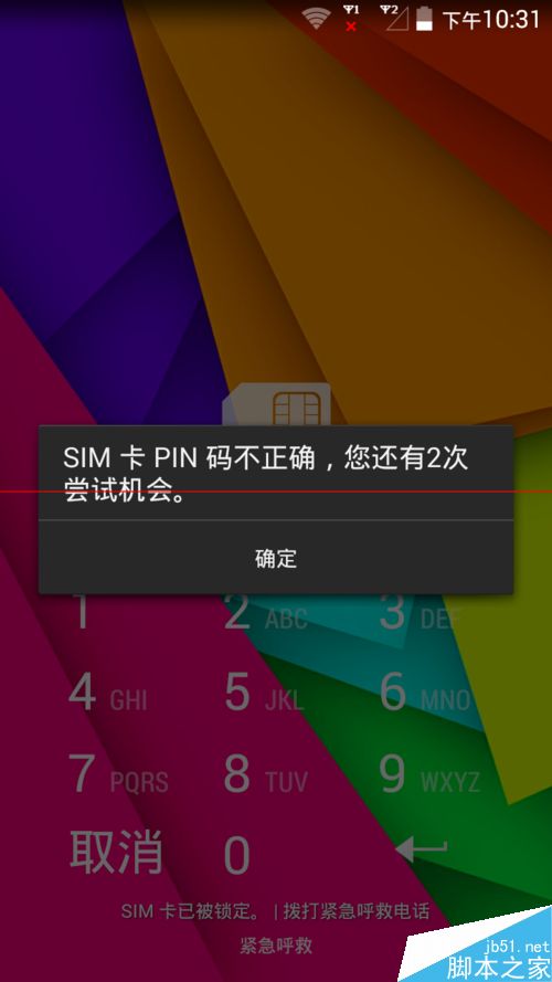 1、當我們的SIM卡PIN碼輸錯一次的時候提示如圖,還剩余2次輸入機會