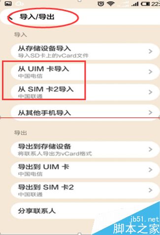 5、不論步驟3還是步驟4,都可以找到”從SIM1或2卡“導入的字眼,單擊