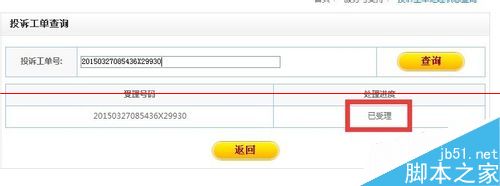 1、如圖所示,移動公司受理後會給這樣一個投訴單號,叫你網上查詢,但查詢起來很不方便。